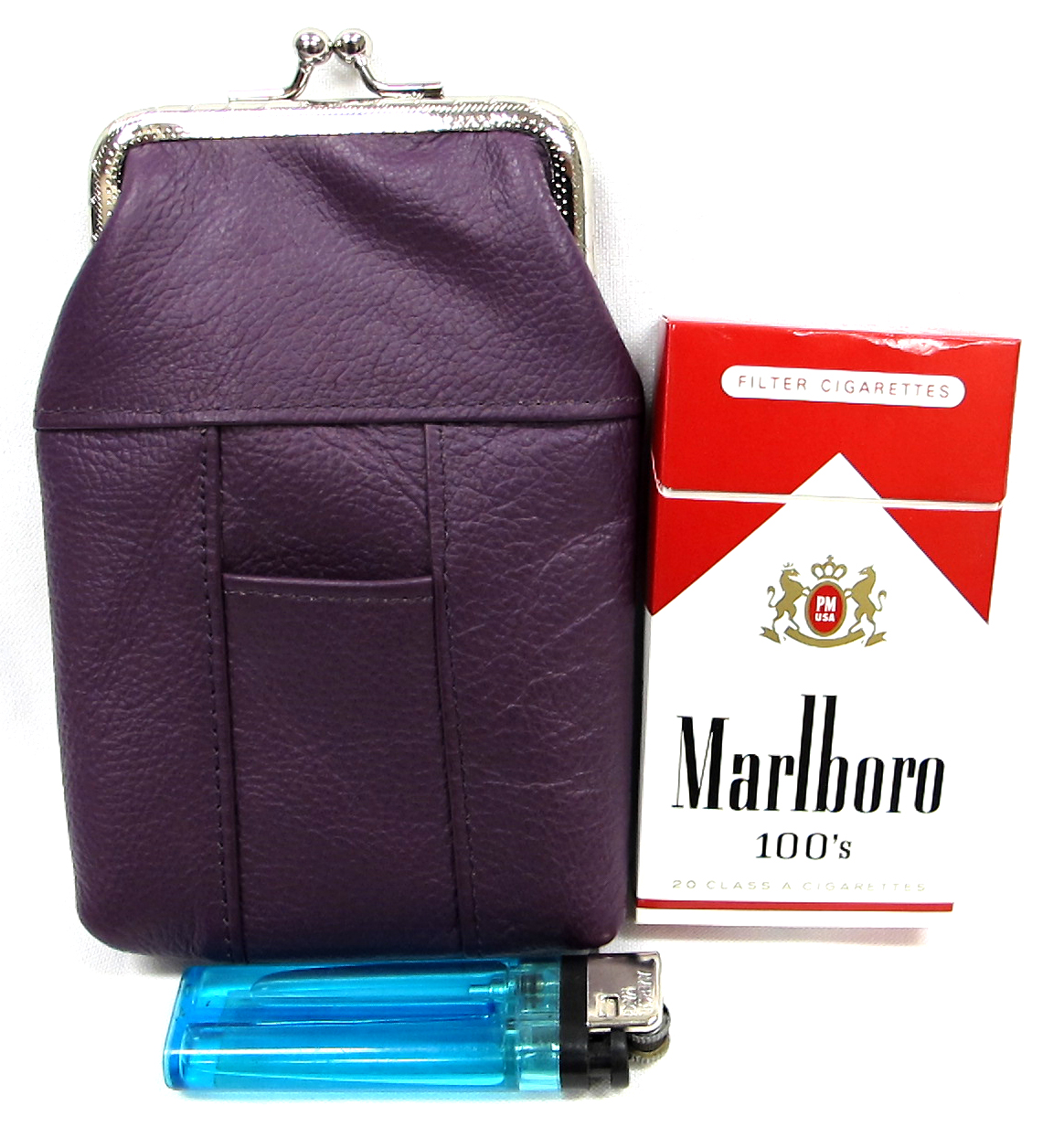 Leather cigarette case, Snap top closure, Front & back pocket, 100's + 120's