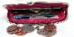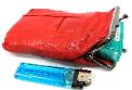 . One compartment for cigarette and one for lighter, match or change . Both compartment w/silver metal frame and easy to open twist clasp closure