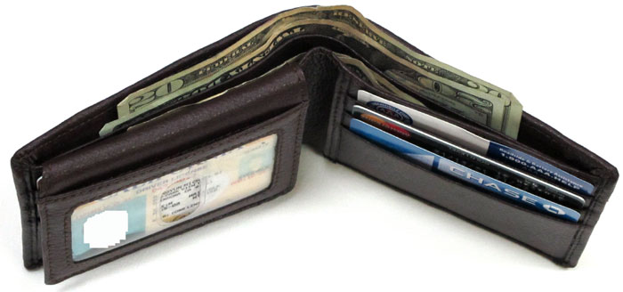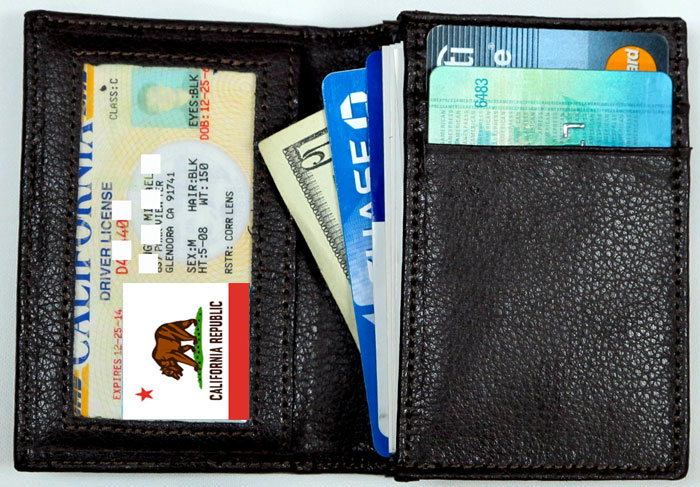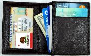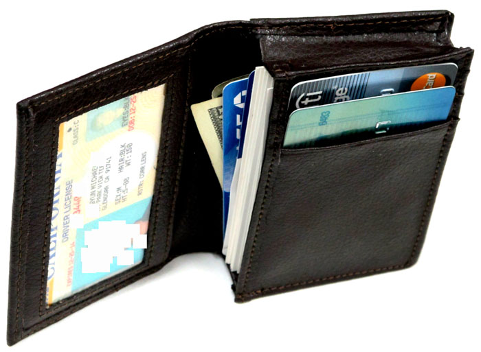 3- Interior Card Slots, 1-Exterior Card Slot, ID Window Genuine leather inside-out